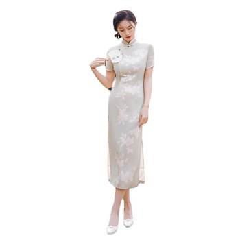 Cheongsam Lungo Estivo Primaverile Abbigliamento Tradizionale Cinese Qipao Giovane Elegante di Alta Gamma a Maniche Corte Stile Nazionale Modello 2119